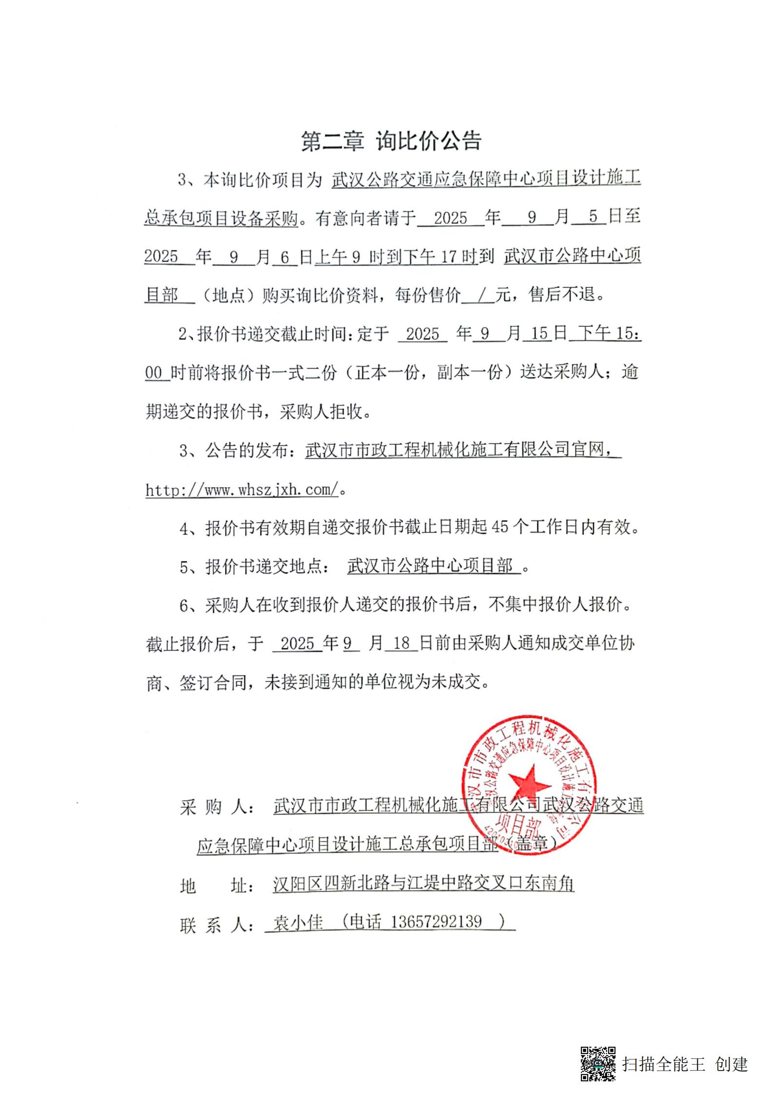 武漢公路交通應(yīng)急保障中心項目設(shè)計施工總承包項目設(shè)備采購詢價公告