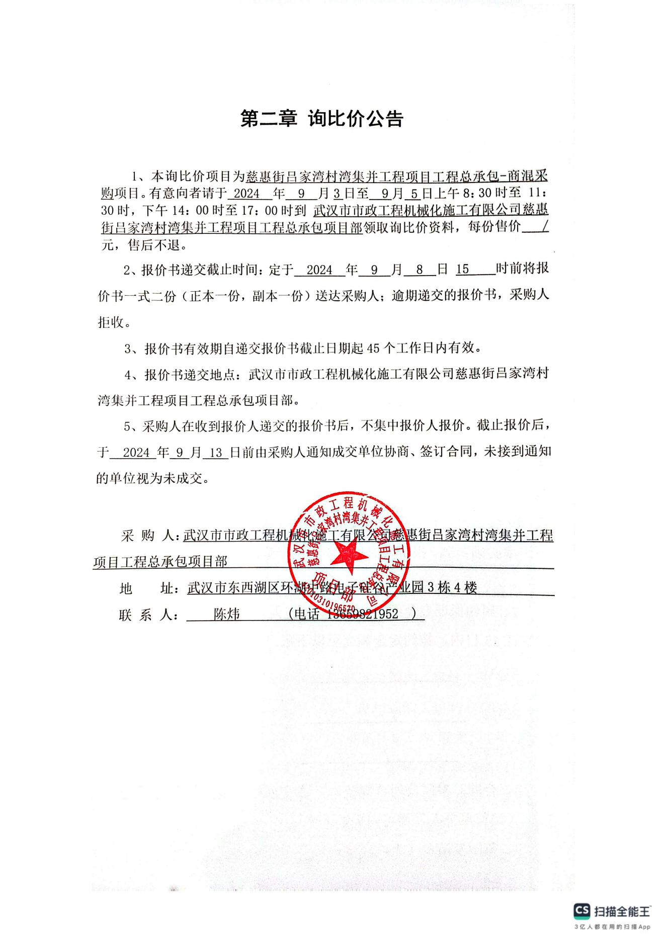 慈惠街呂家灣村灣集并工程項目工程總承包-商混采購詢比價公告