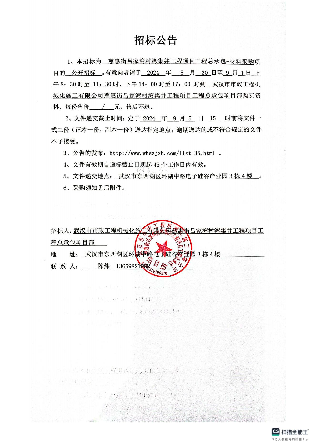 慈惠街呂家灣村灣集并工程項目工程總承包-材料采購招標公告