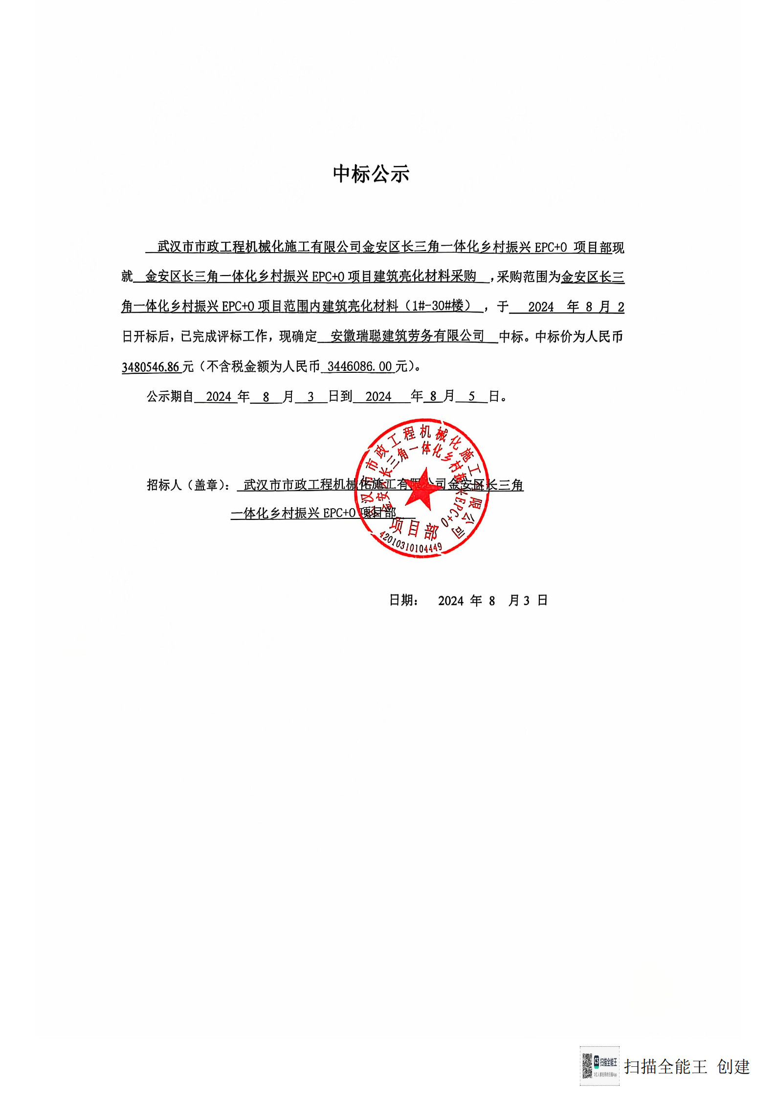 金安區(qū)長三角一體化鄉(xiāng)村振興EPC+O項目建筑亮化材料采購中標公示
