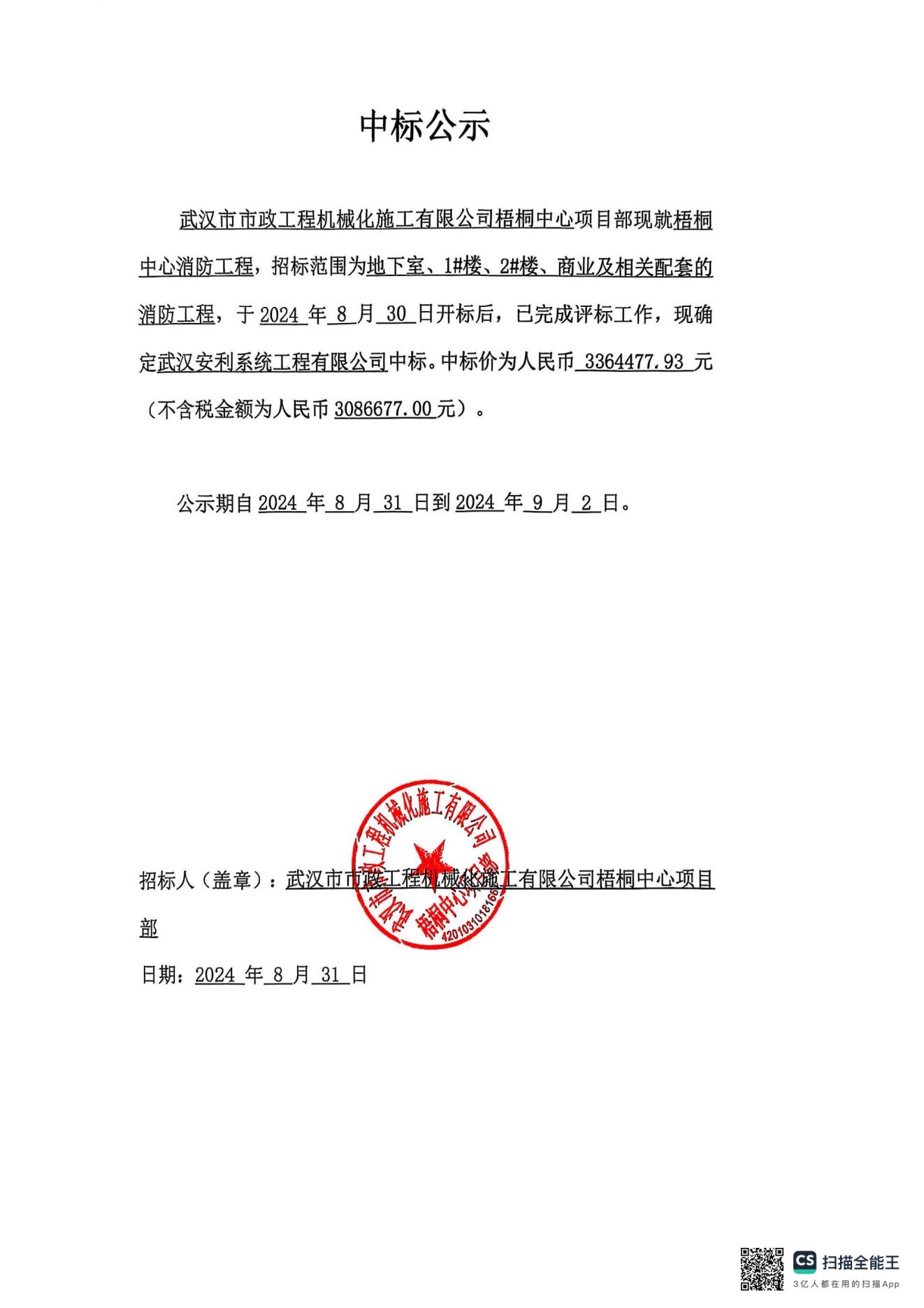 梧桐中心消防工程中標(biāo)公示